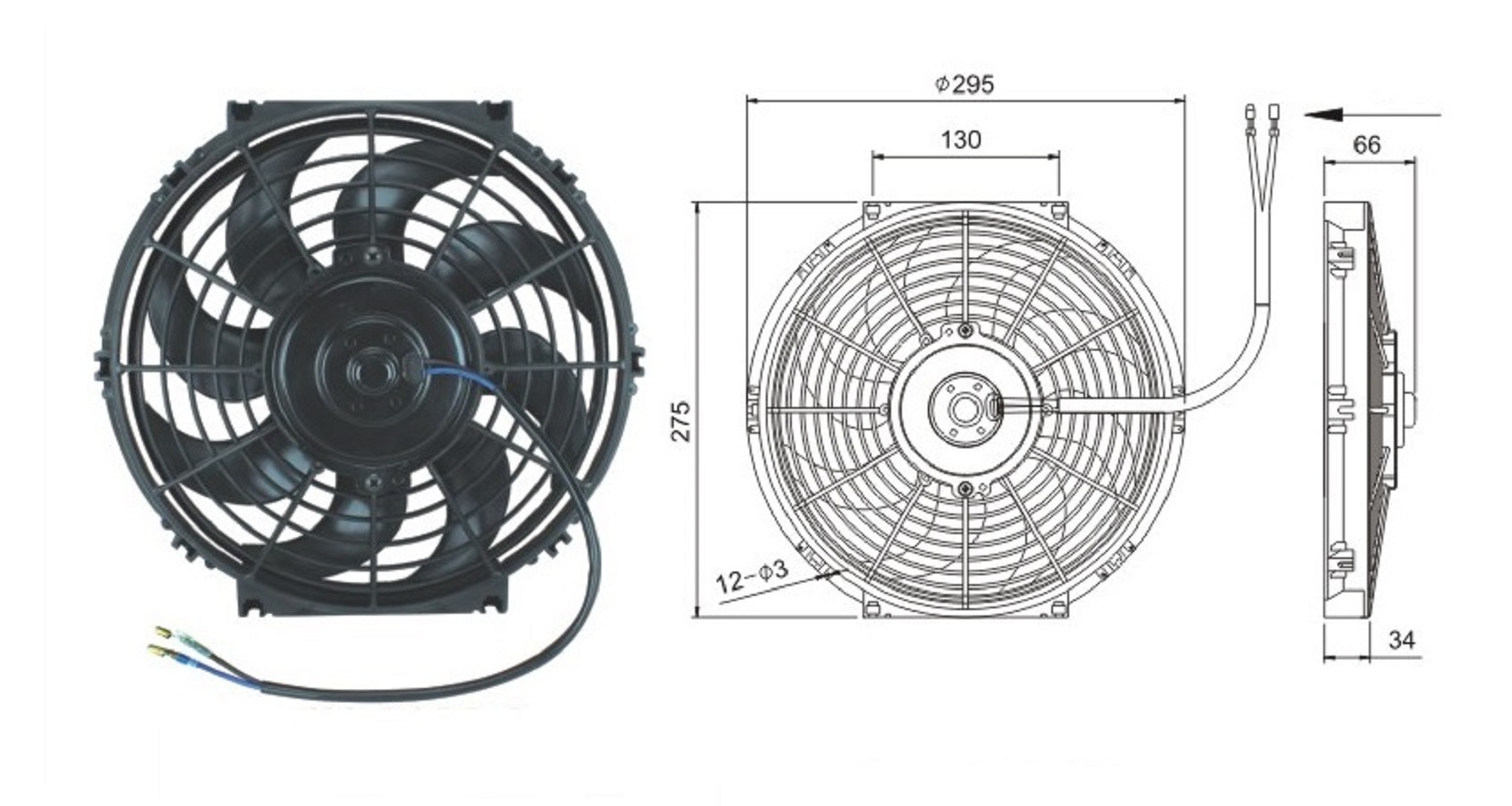 Вентилятор 10" 12V Pusher 80W "S"